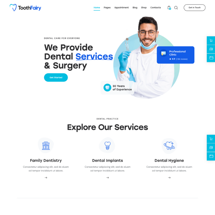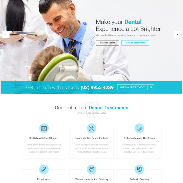 Modern dental clinic showcasing services implants, hygiene, family care with best doctors and excellent reviews.